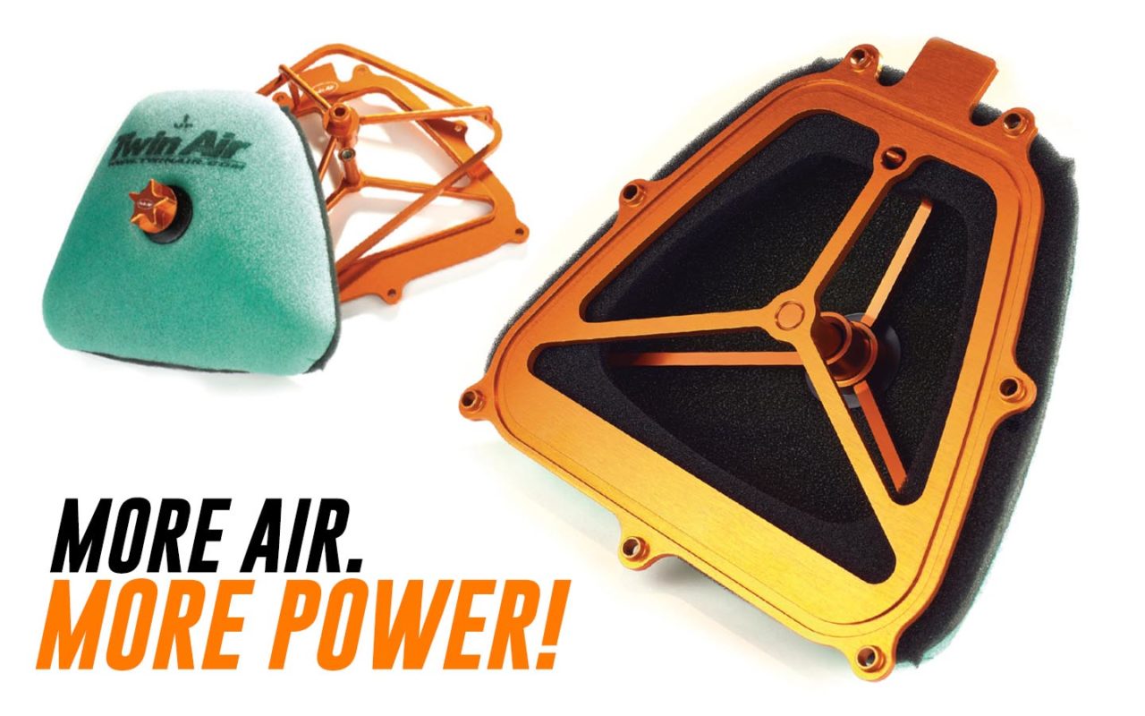The best filter in the world can’t do it’s job if there are leaks in the seal of the airbox. TwinAir’s PowerFlow Kits ensure a leak-proof, fool-proof fit with a rigid, lightweight, billet-aluminum cage that replaces your flimsy, plastic stock cage, and a billet aluminum flange with a rubber seal that bolts tight to your airbox. Our PowerFlow Kits use open cages without backfire screens and higher performance filters, in general this always creates more airflow for the bike!