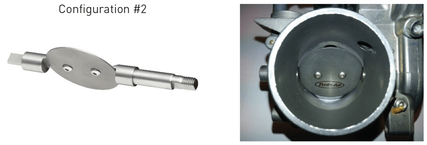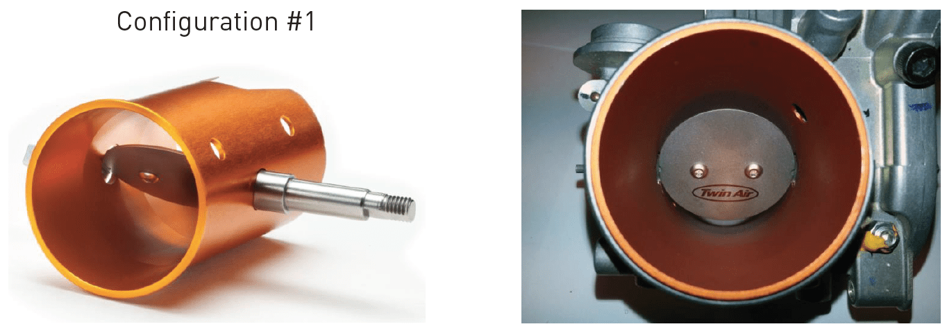 The Twin Air Powerflow Throttle Body Kit Configuration #1 provides low-mid range gains utilizing a smaller diameter intake tube and a lower profile throttle valve. This configuration increases the throttle response making the power more controllable.
